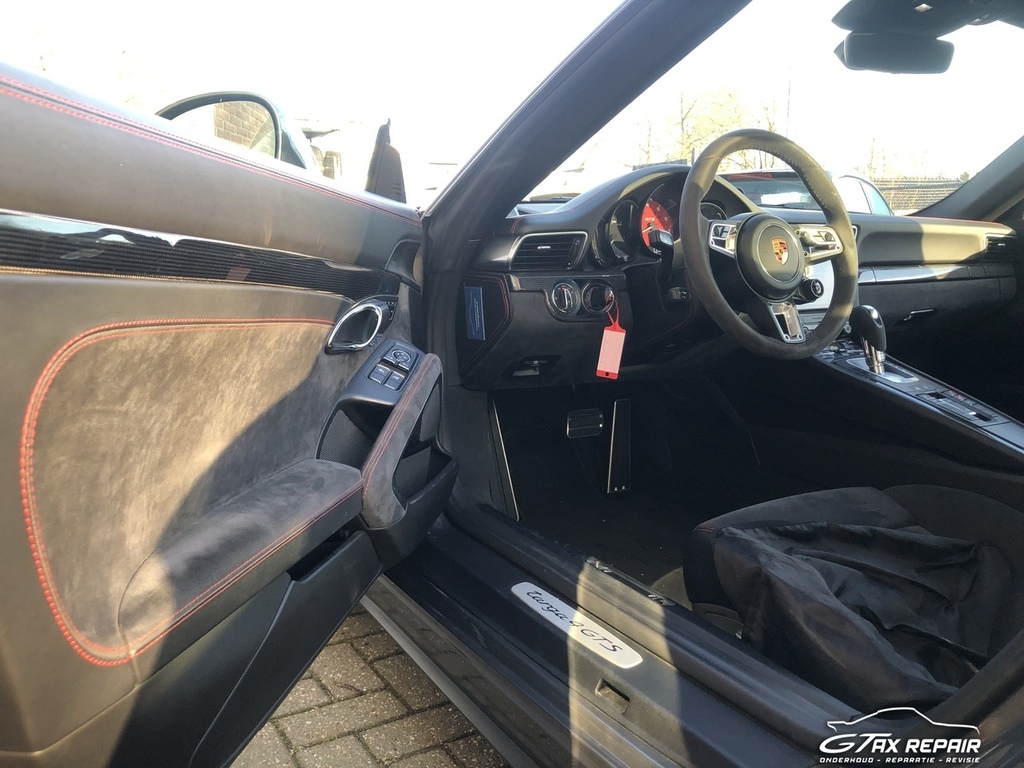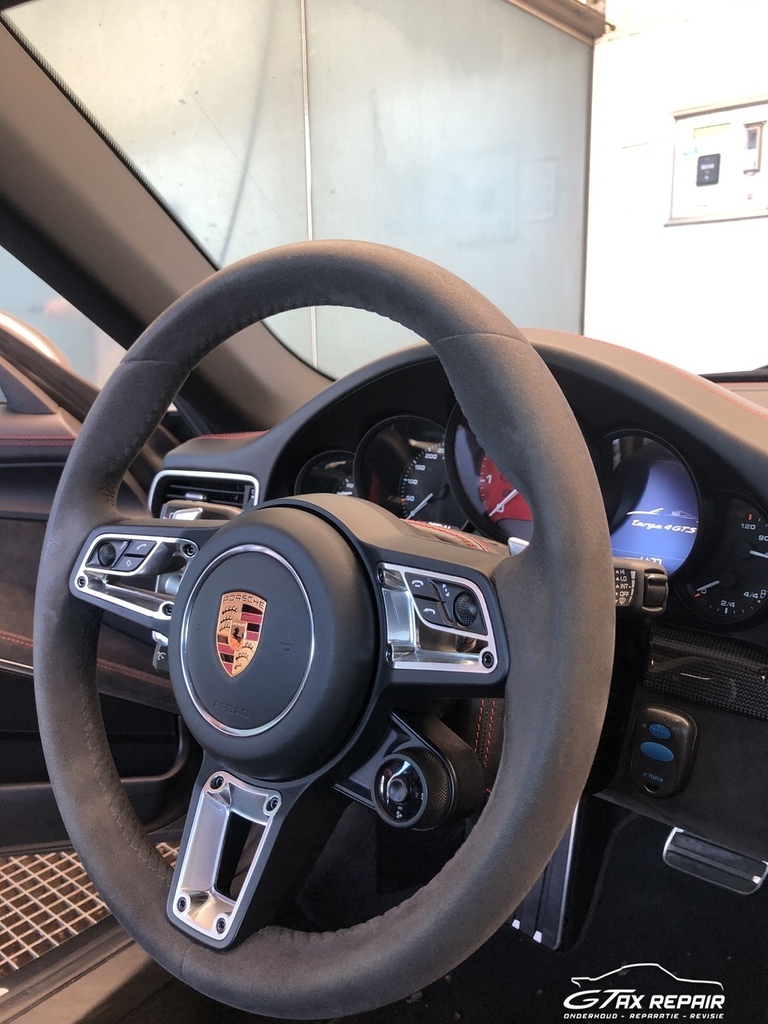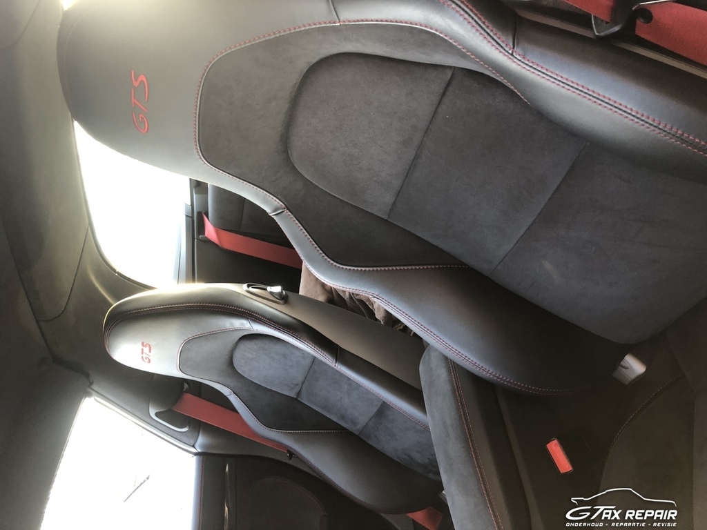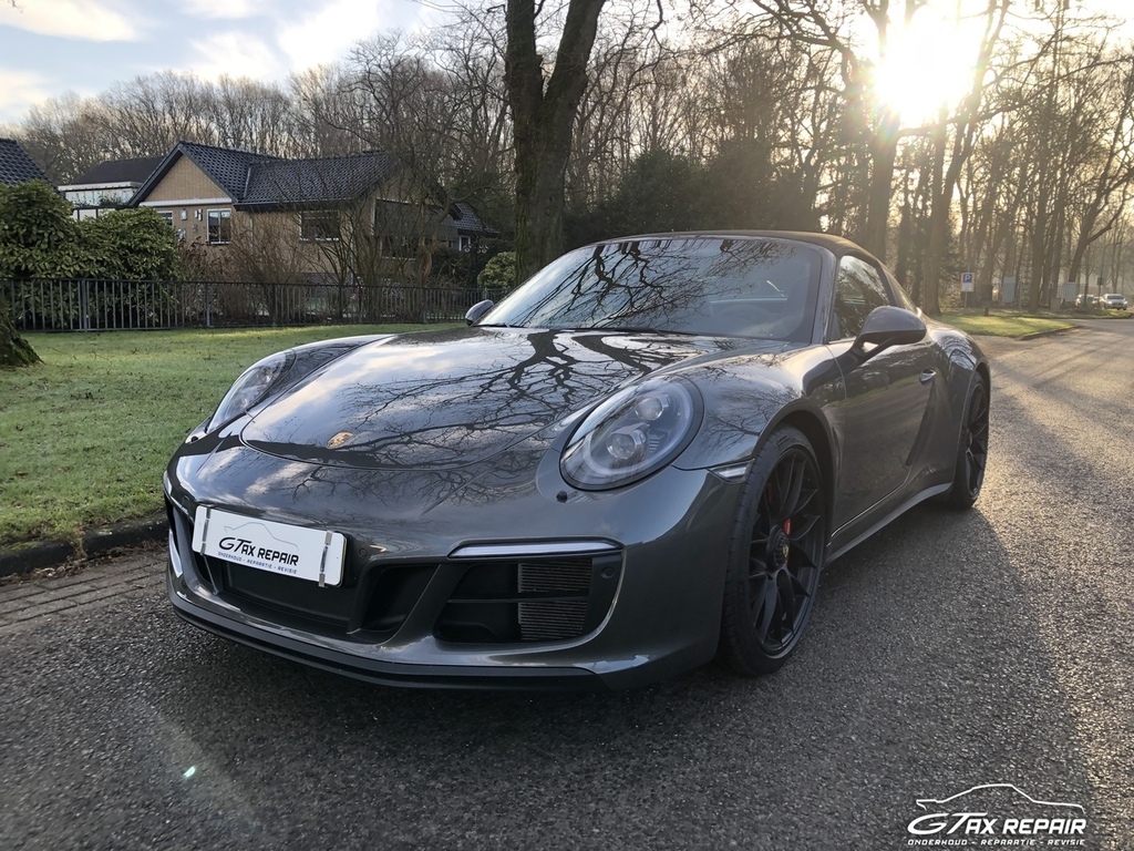 Te koop aangeboden in opdracht van klant Porsche 911 (991.2) 3.0 Targa 4 GTS in de cominatie van exterieur Grey met GTS-interieurpakket met stiksels in karmijnrood.