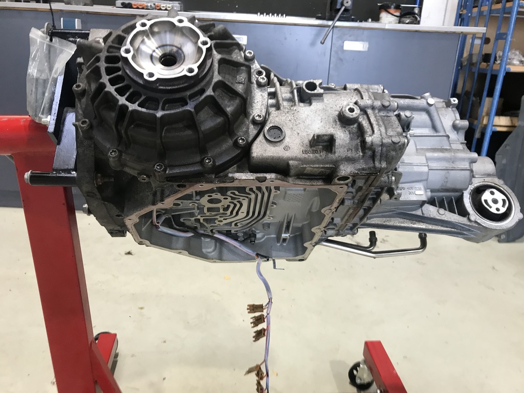 Deze 991.1 Carrera S kwam binnen met de klacht dat de PDK-bak niet goed meer schakelde, kraakte en storingen gaf omdat hij niet meer van versnelling 4 naar 5 wilde. Hierna hebben we de bak meteen uitgelezen met ons originele testapparatuur en diverse sensoren gecontroleerd. Vervolgens is de carterpan uitgebouwd, het “brein” eruit gehaald, waarna we constateerden dat de schakelenheid beschadigd was en de bak in verschillende versnellingen hevig bleef hangen.