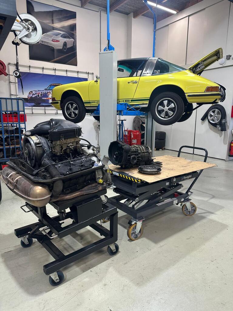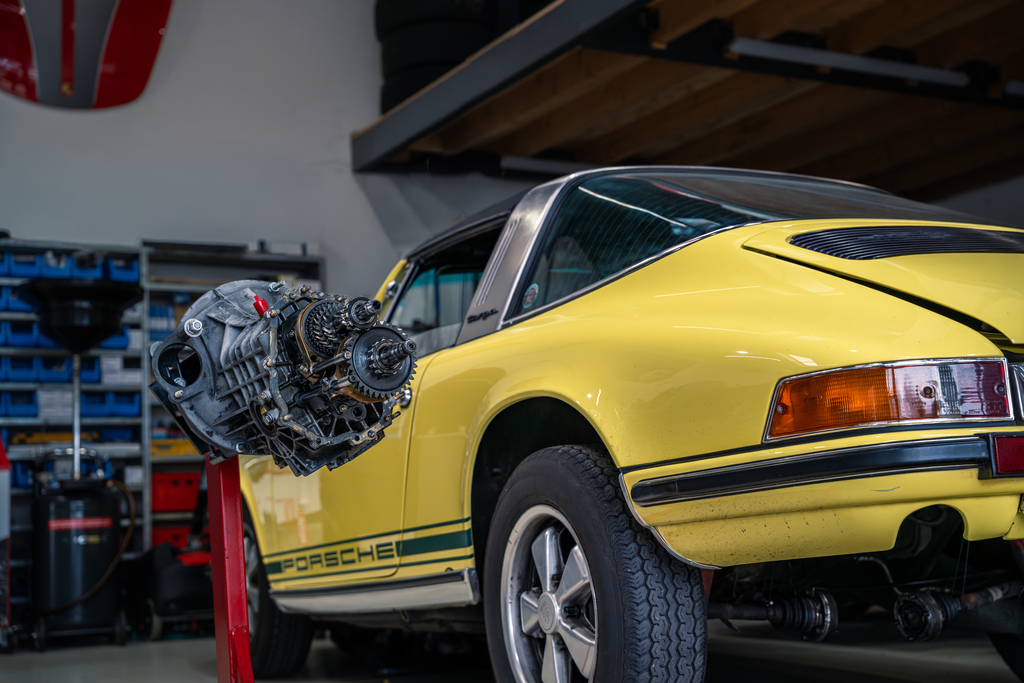 Momenteel zijn wij bezig met de revisie van de 915 versnellingsbak van deze Porsche 911 T Targa uit het bouwjaar 1973.